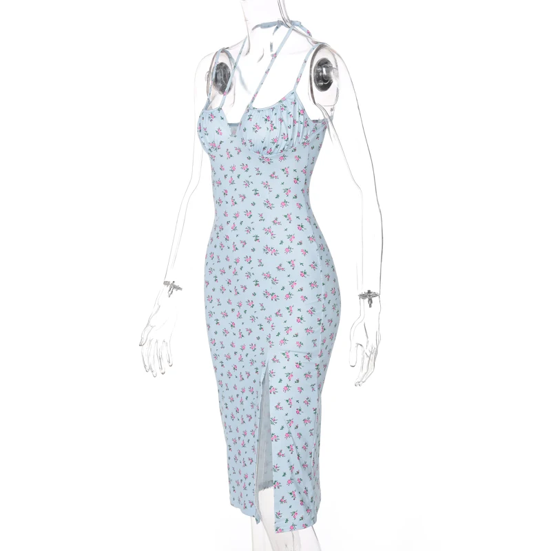 Introducing the Hugcitar 2023 Sleeveless Satin Slip Floral Ruched Bandage Cut-Out Maxi Dress, a stunning addition to your summer wardrobe. This dress is designed to make a statement with its sleek and sophisticated silhouette. Crafted from high-quality polyester and spandex, it offers a slight stretch for a comfortable fit while maintaining its shape.