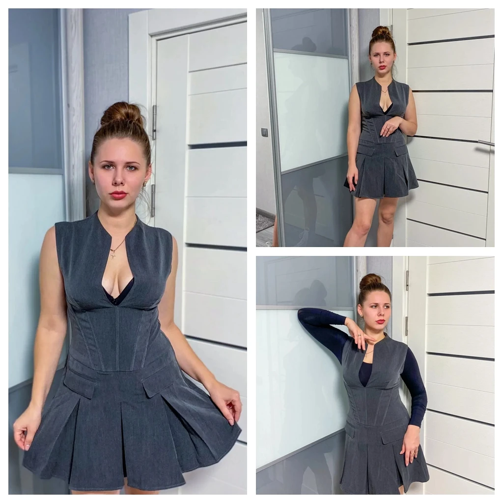 Introducing the Suninheart Autumn Women’s Office Lady Blazer Dress, a perfect blend of sophistication and casual fashion. This sleeveless A-line dress in a versatile gray hue is designed to enhance your professional wardrobe with a touch of elegance.