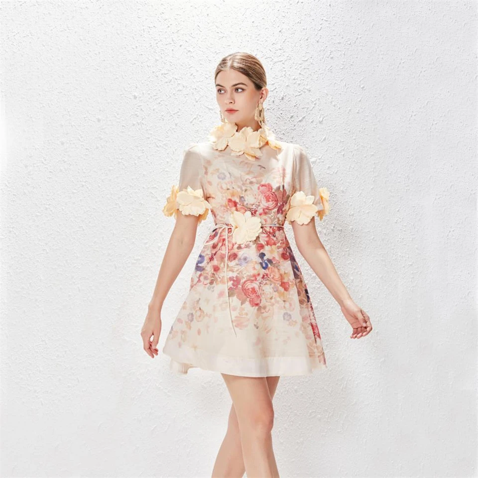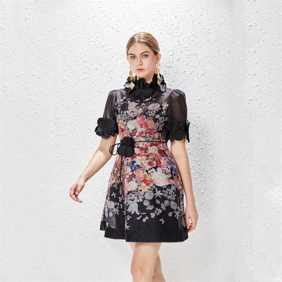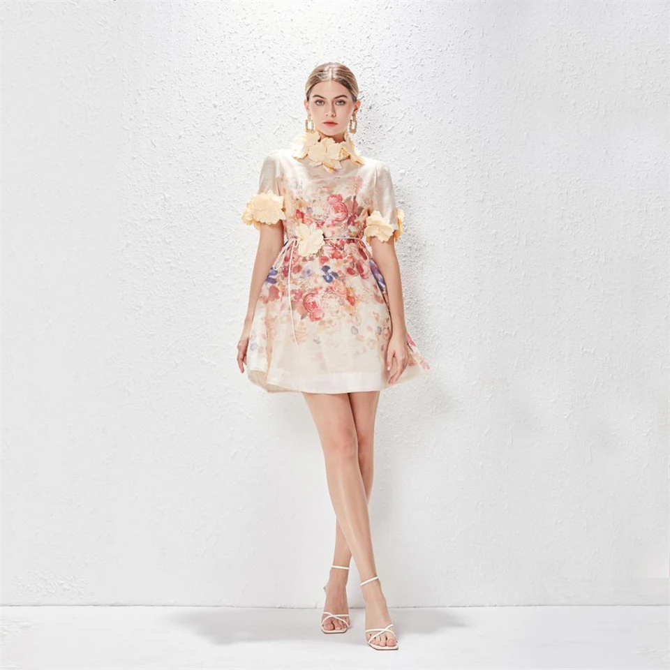 Step into summer with elegance and style with our Brand Women Spring Summer 2024 Vintage 3D Flower Lace-Up Mini Dress. This exquisite piece is designed to capture the essence of timeless fashion while providing comfort and sophistication.