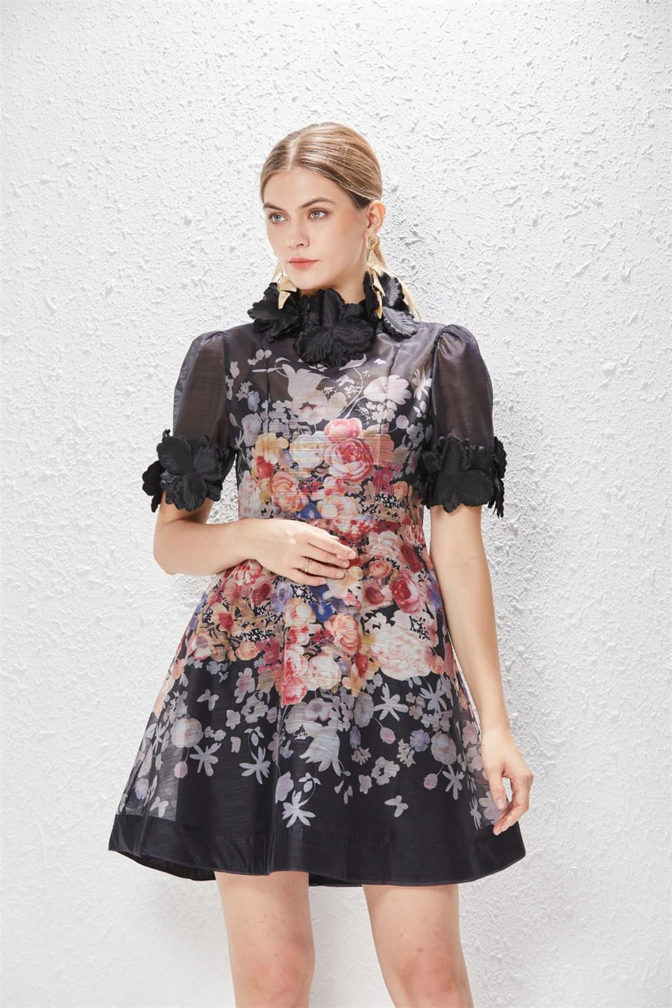 Design and Fabric Crafted from premium chiffon, this dress offers a light and breezy feel, perfect for warm weather. The fabric’s slight stretch ensures a comfortable fit, hugging your body in all the right places while allowing for easy movement. The intricate 3D flower detailing adds a touch of whimsy and femininity, making this dress a standout piece in any wardrobe.
