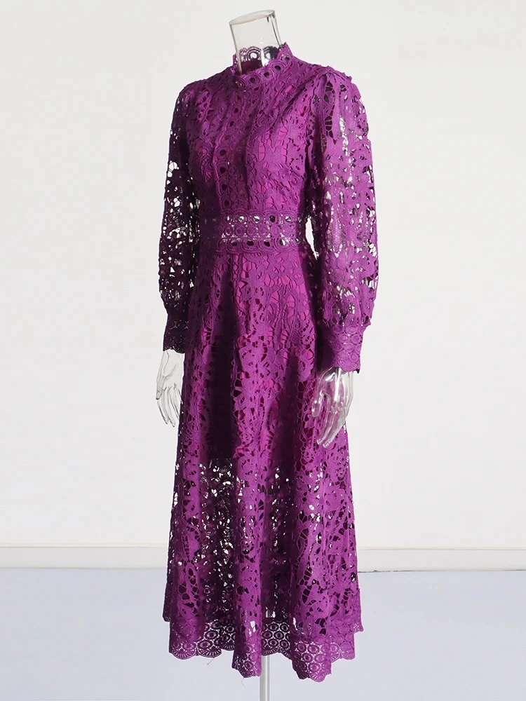 Embrace timeless elegance with the Doris Fanny Hollow Out Vintage Dress. This exquisite piece is designed for women who appreciate a blend of vintage charm and modern sophistication. Crafted with meticulous attention to detail, the dress features an intricate lace pattern that adds a touch of romantic allure.