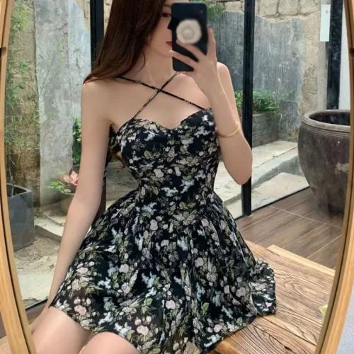 The dress is designed with a high waistline that cinches at the waist, creating a flattering silhouette. Its loose lower body provides a graceful flow, making it ideal for beach vacations, casual outings, and evening parties. The knee-length skirt adds a touch of modesty while maintaining a sexy, nightclub-ready look.