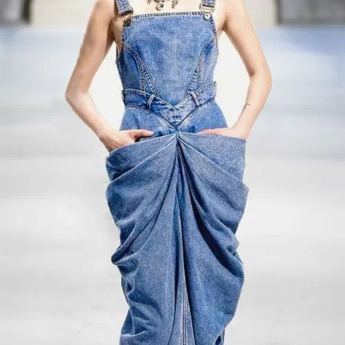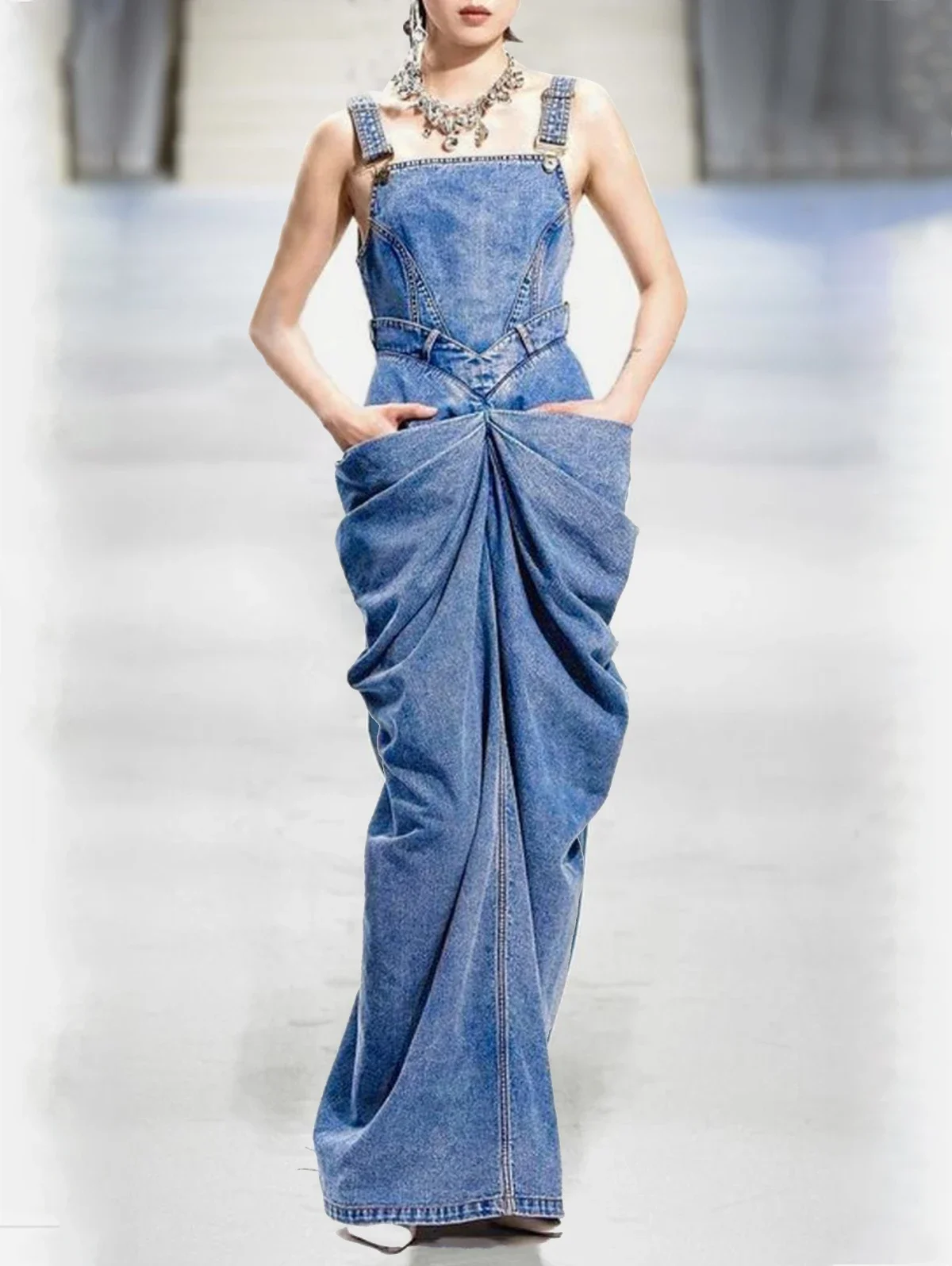 Discover the perfect blend of vintage elegance and modern style with our sleeveless ruched denim maxi dress. Ideal for summer parties and casual outings, this bodycon dress features a chic buckle detail, ensuring you stand out with sophistication.