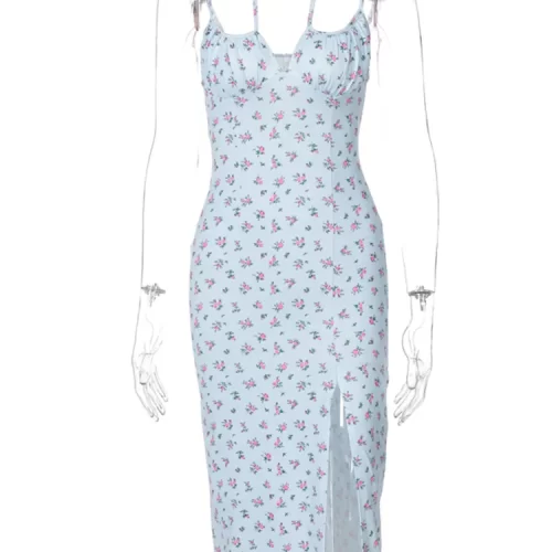 Introducing the Hugcitar 2023 Sleeveless Satin Slip Floral Ruched Bandage Cut-Out Maxi Dress, a stunning addition to your summer wardrobe. This dress is designed to make a statement with its sleek and sophisticated silhouette. Crafted from high-quality polyester and spandex, it offers a slight stretch for a comfortable fit while maintaining its shape.